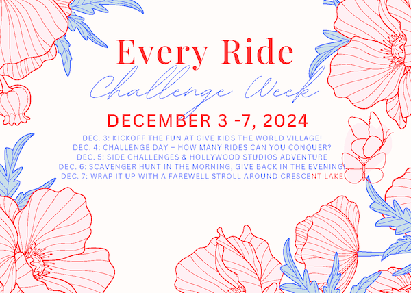 On December 5th, celebrate Walt Disney’s 123rd birthday, Give Kids the World and Every Ride Challenge will be hosting a special tour at Disney’s Hollywood Studios. Side challenges will be happening across all four parks, resorts, and even on transportation! In the past, we’ve had fun riding the rafts to Tom Sawyer Island, grabbing drinks at La Cava in Epcot, and taking shots of Beverly at Club Cool. This year, you might find yourself taking silly selfies, posing for a photo with Walt Disney himself, or trying to catch a random Main Street vehicle cruising down Main Street. It’s all about having fun while raising money for the Village!